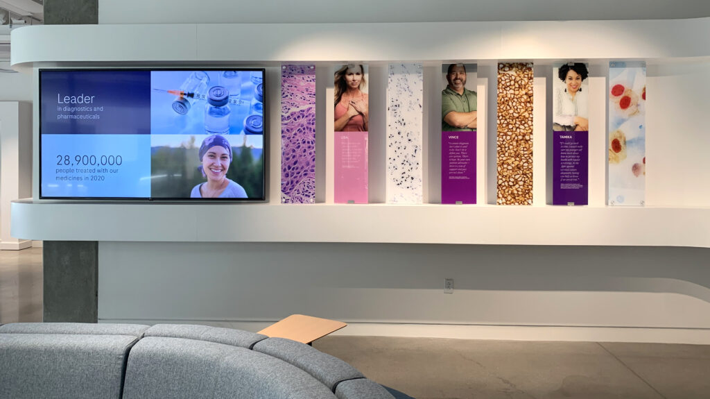 Roche Diagnostics, Frontify Digital Style Guide, Rebranding, Brand alignment across multiple acquisitions. Showroom Design, Tradeshows